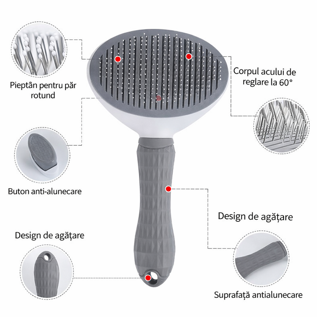 Îți iubești prietenul blănos, dar năpârlirea e o bătaie de cap? Periile clasice adună părul, dar curățarea lor durează mai mult decât periatul. Alege o perie care se curăță singură – apeși butonul și gata.